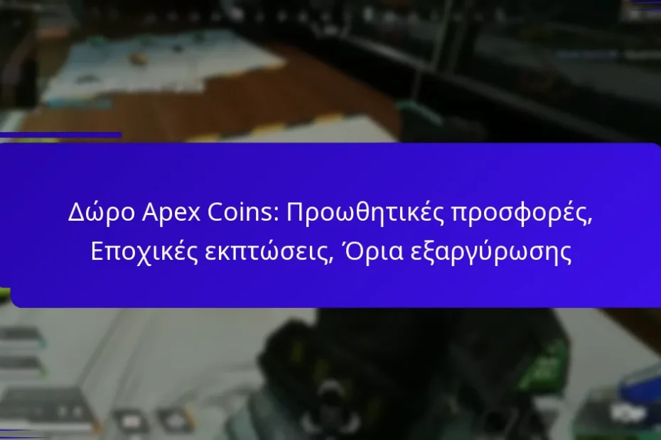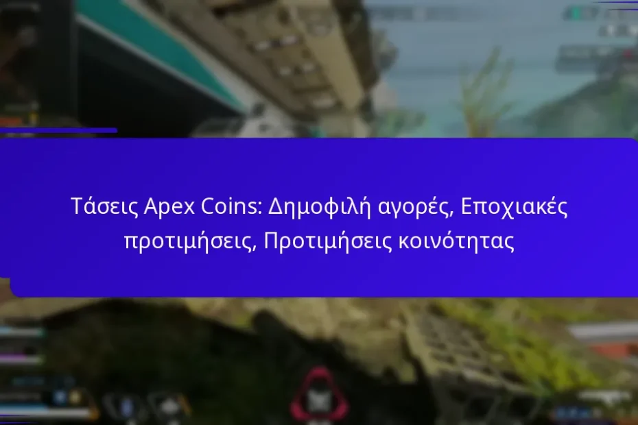 Τα Apex Coins έχουν γίνει ένα ζωτικής σημασίας νόμισμα για τους παίκτες που επιθυμούν να ενισχύσουν την εμπειρία παιχνιδιού τους μέσω αγορών καλλωπιστικών αντικειμένων. Δημοφιλή αντικείμενα περιλαμβάνουν δέρματα χαρακτήρων και καλλωπιστικά όπλων, με τις εποχιακές… Τάσεις Apex Coins: Δημοφιλή αγορές, Εποχιακές προτιμήσεις, Προτιμήσεις κοινότητας