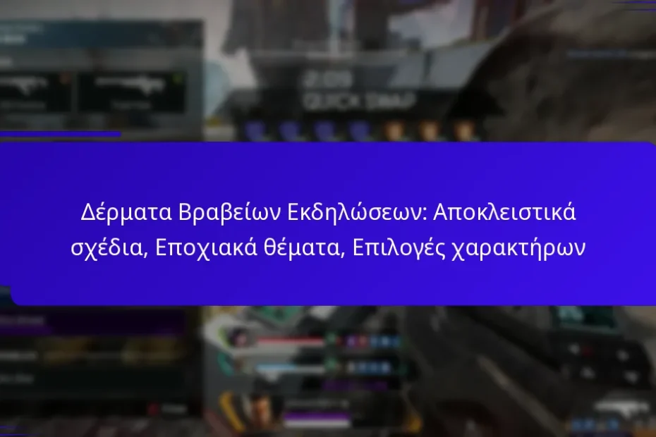 Τα δέρματα βραβείων εκδηλώσεων στο Apex Legends είναι αποκλειστικά καλλιτεχνικά σχέδια που οι παίκτες μπορούν να κερδίσουν κατά τη διάρκεια ειδικών εκδηλώσεων εντός του παιχνιδιού. Αυτά τα δέρματα όχι μόνο ενισχύουν την οπτική απήχηση των… Δέρματα Βραβείων Εκδηλώσεων: Αποκλειστικά σχέδια, Εποχιακά θέματα, Επιλογές χαρακτήρων